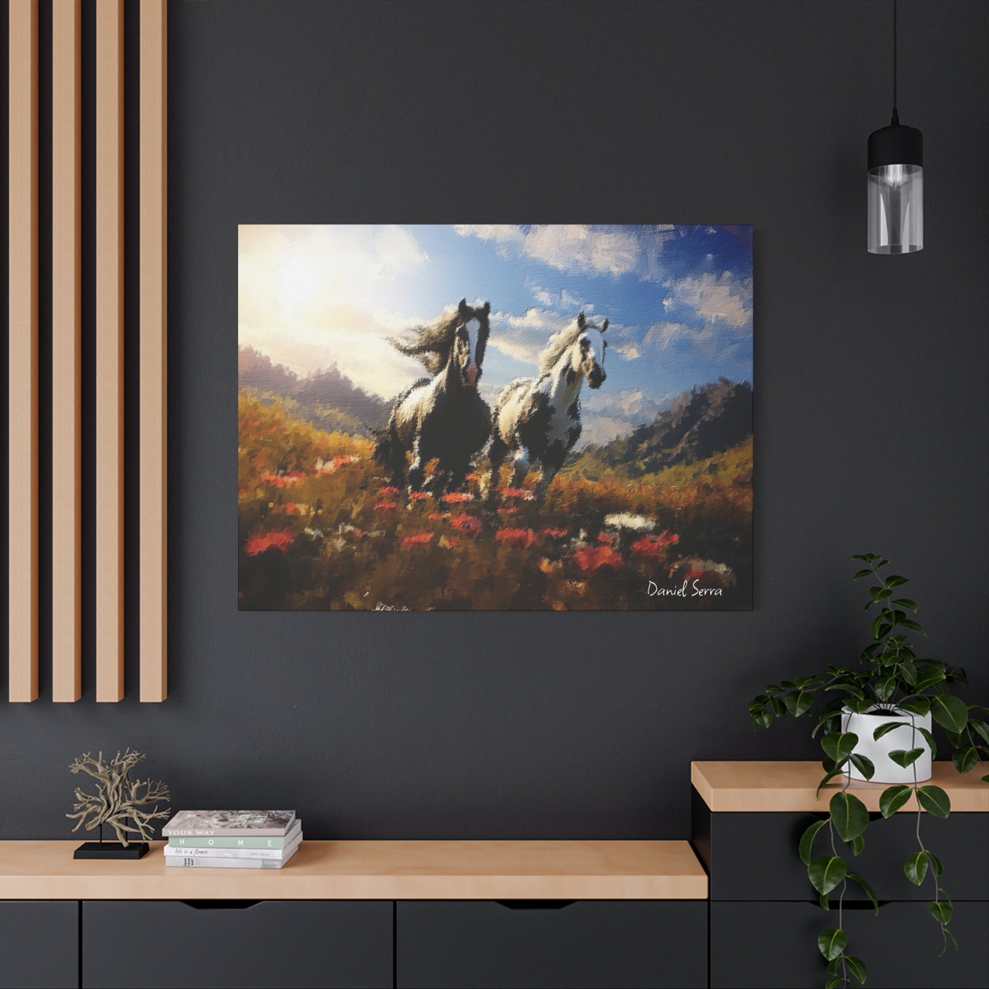 Each image is a high-definition digital artwork by Daniel Serra, created exclusively for Zero Dirt Home art products. Printed on premium stretched canvas with pre-installed hooks, every piece arrives ready to hang. A framed canvas brings warmth and elegance to any room, making it the perfect choice for home décor, weddings, birthdays, or meaningful gifts.